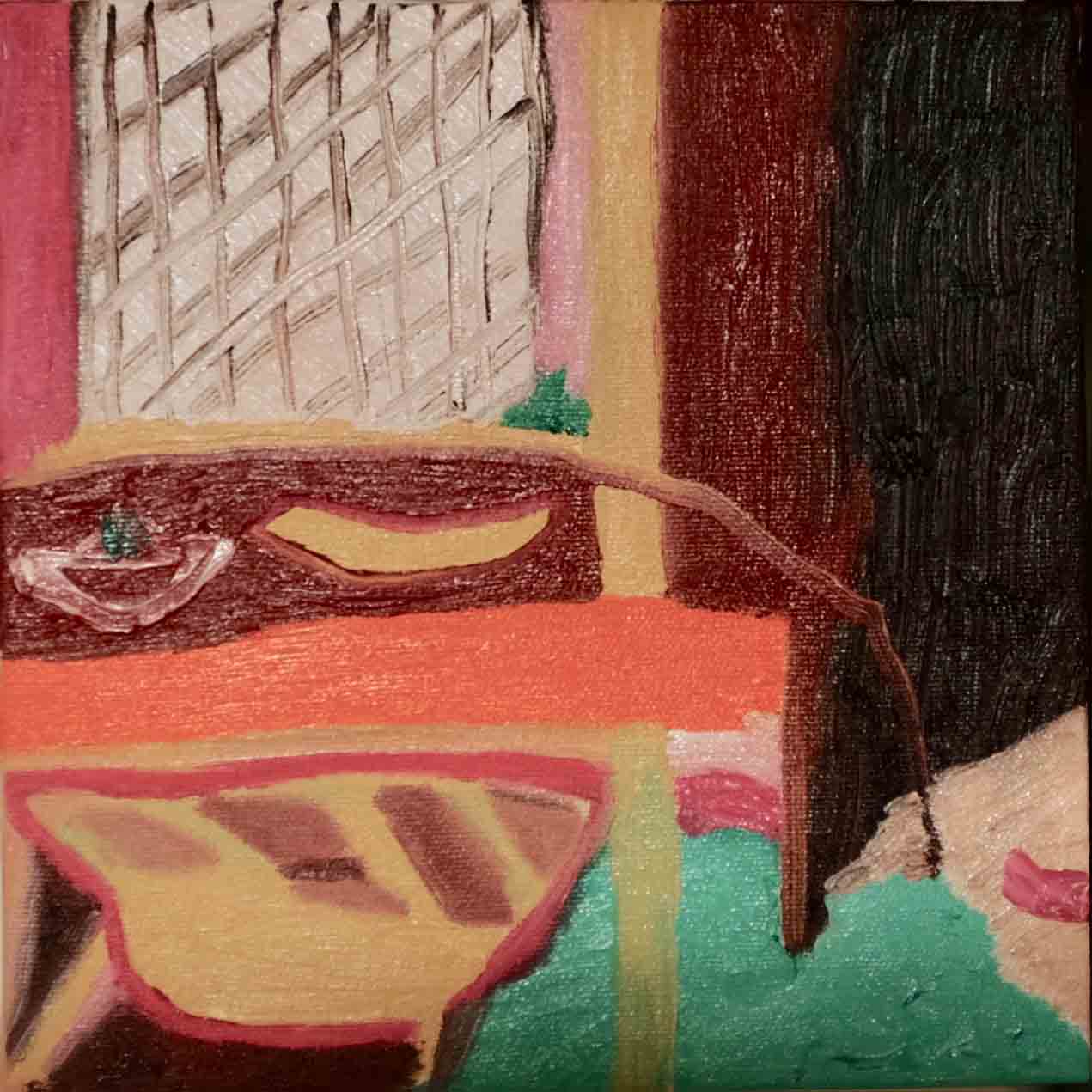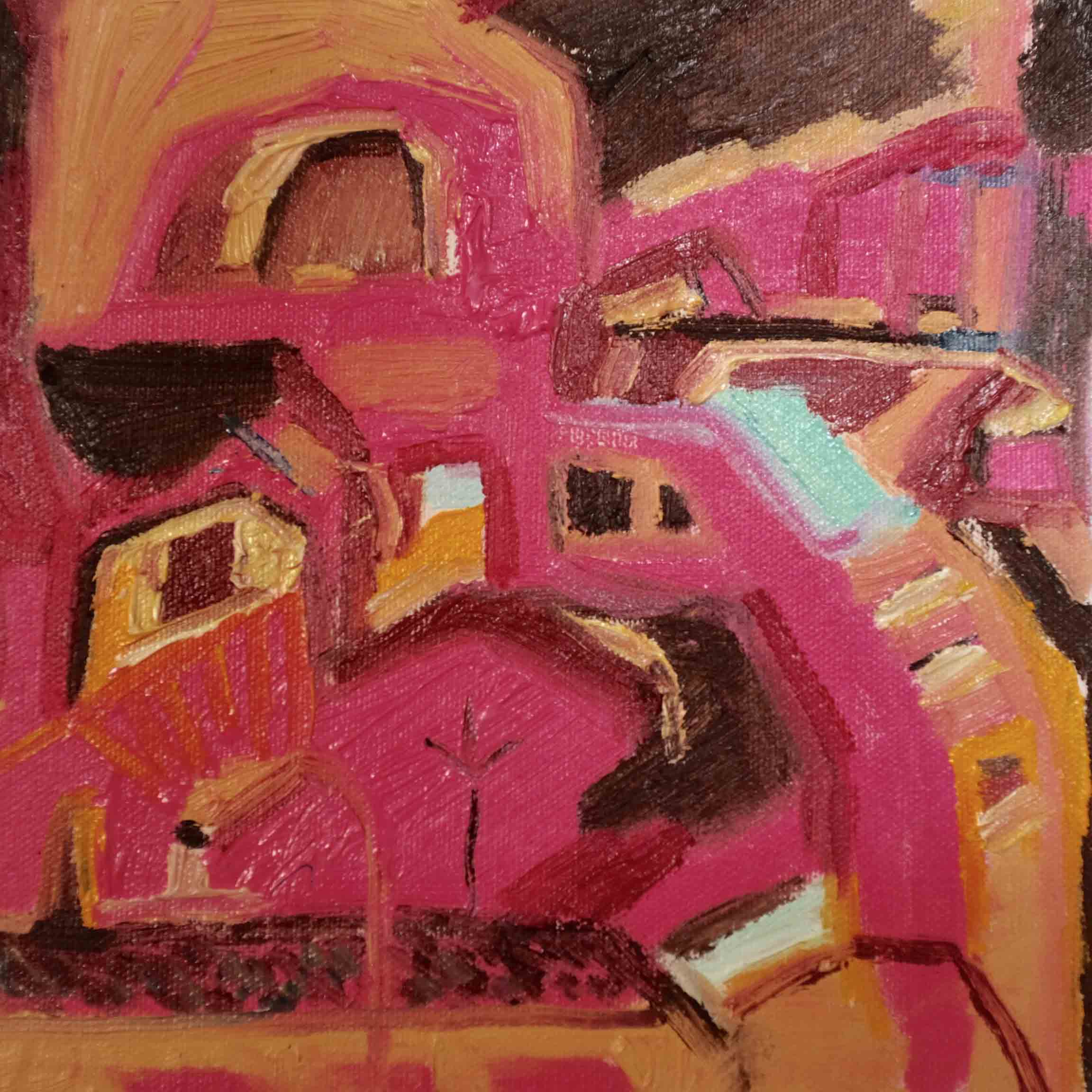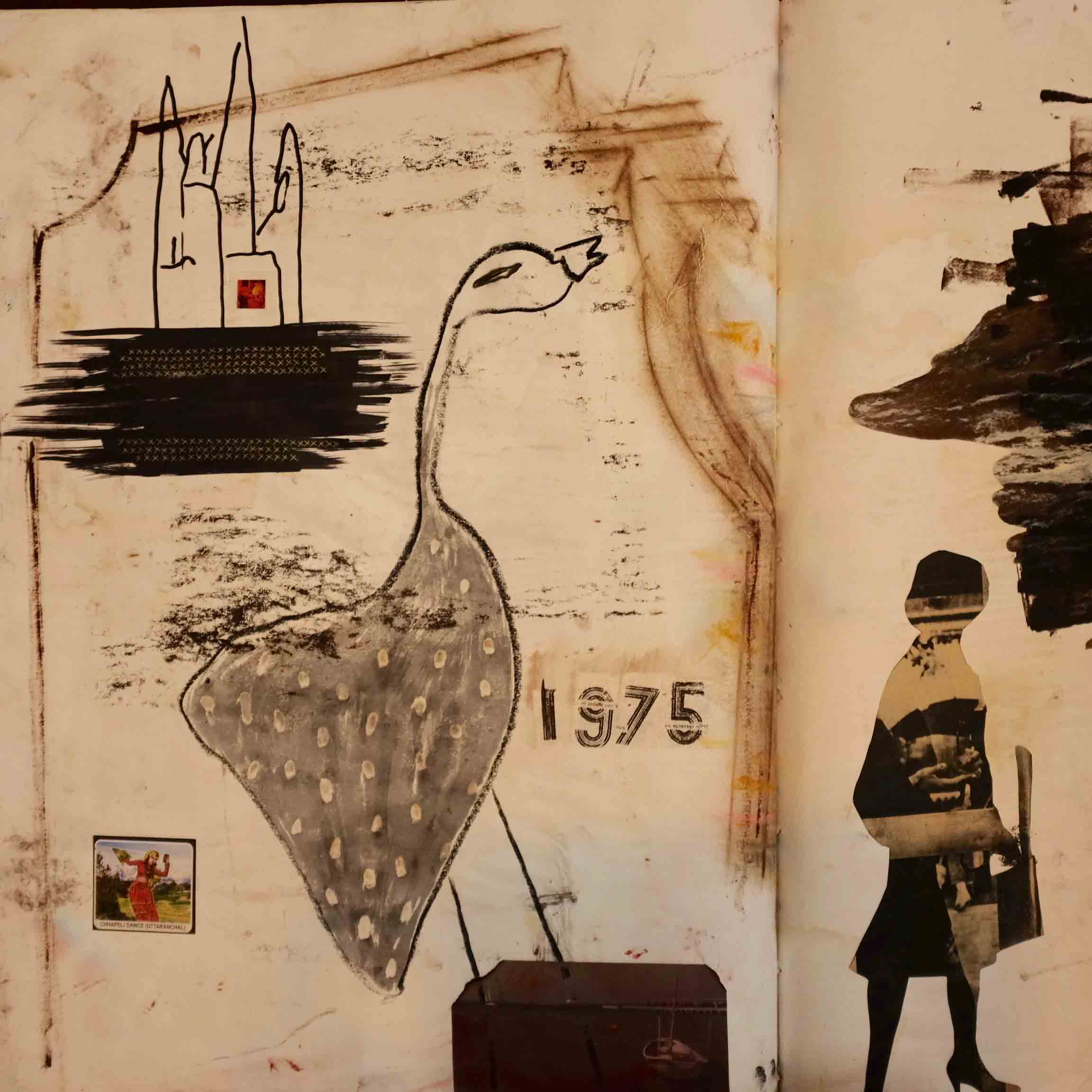 Pintura sobre foamboard y tela, collages, telares, máscaras, pantalla luminosa, video y arte objeto.
